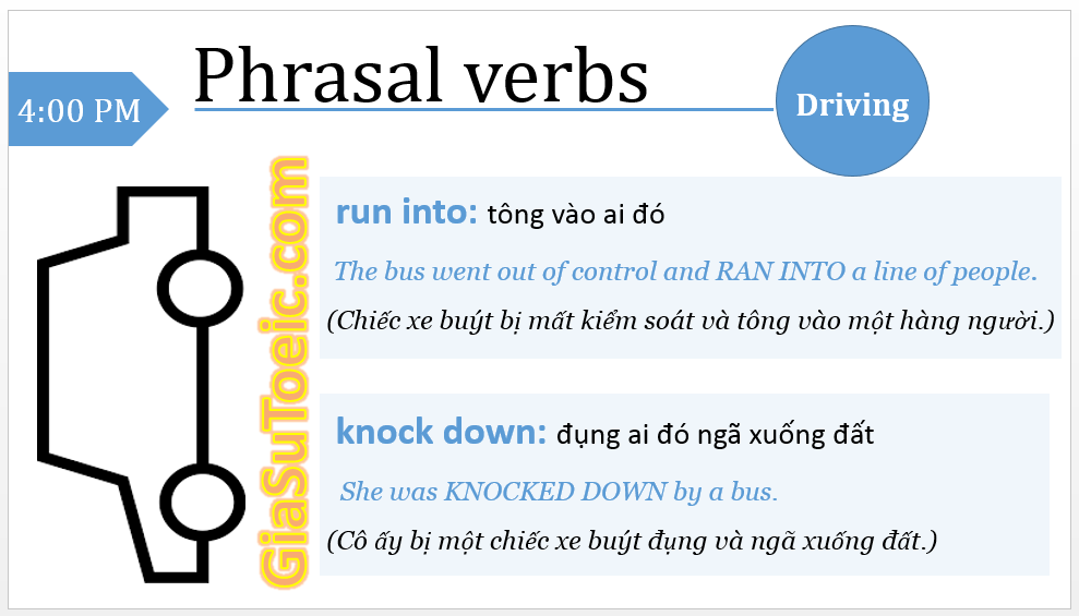 Luyện thi TOEIC Từ vựng TOEIC Bài này Phrasal verb theo chủ đề: Lái xe (3) Với những bài học dễ hiểu, sát thực tế, Tiếng Anh Mỗi Ngày giúp bạn từng bước tự tin sử dụng tiếng Anh và chinh phục kỳ thi TOEIC. Luyện thi TOEIC online cùng Tiếng Anh Mỗi NgàyTạo tài khoản học thử (miễn phí) – để bắt đầu chinh phục mục tiêu TOEIC của bạn, và cảm nhận sự tự tin rằng bạn có thể giỏi tiếng Anh! Đăng ký bằng Facebook hoặc ⯈ Đăng ký bằng email Tìm kiếm bài học bạn đang quan tâm Tham khảo thêm những bài viết về những chủ đề tương tự 1400+ từ vựng TOEIC hay gặp nhất trong các đề thi TOEIC Trang bị từ vựng khi xin việc vào các doanh nghiệp nước ngoài. Phân biệt "from" và "form" Phrasal verb theo chủ đề: Động vật (5) Phân biệt "later" và "latter" Phrasal verb theo chủ đề: Động vật (4) Xem tất cả các bài viết về Từ vựng TOEIC