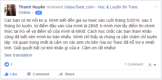 Chúc mừng bạn Huyền đã đạt được kết quả cao trong bài thi TOEIC của mình! Tiếng Anh Mỗi Ngày thật sự rất vui vì có thể giúp bạn luyện thi hiệu quả. Chúc Huyền ngày càng học giỏi tiếng Anh hơn nữa nhé!