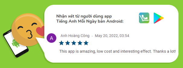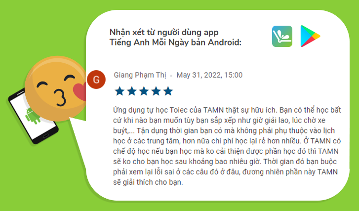 Đây là review tiêu biểu trên Tiếng Anh Mỗi Ngày mobile apps: