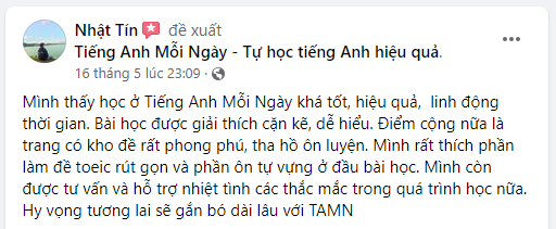 Đây là review tiêu biểu trên Fanpage Tự học tiếng Anh hiệu quả (Fanpage thứ 2 của TAMN):