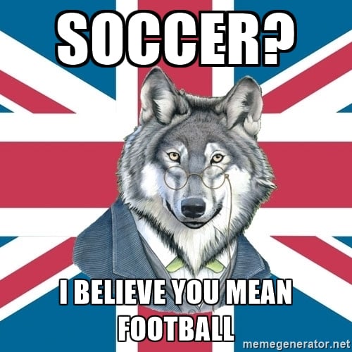 Nếu bạn nào có câu trả lời như trên thì đáng tiếc là bạn chỉ đúng có một nửa thôi. Câu trả lời đầy đủ phải là: bóng đá = FOOTBALL ở Anh và châu Âu = SOCCER ở các nước nói tiếng Anh khác như Mỹ, Úc, Canada.