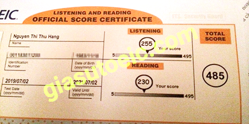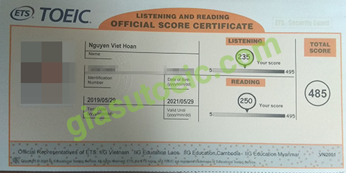 Sau 3 tháng ôn tập trên Tiếng Anh Mỗi Ngày, bạn Hoàn đã đạt được 485 điểm TOEIC thật.
