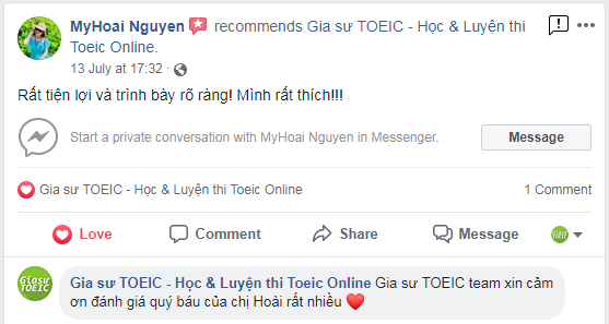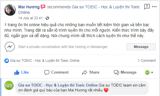 Xem nhận xét khác trên Gia sư TOEIC Fanpage tại đây!