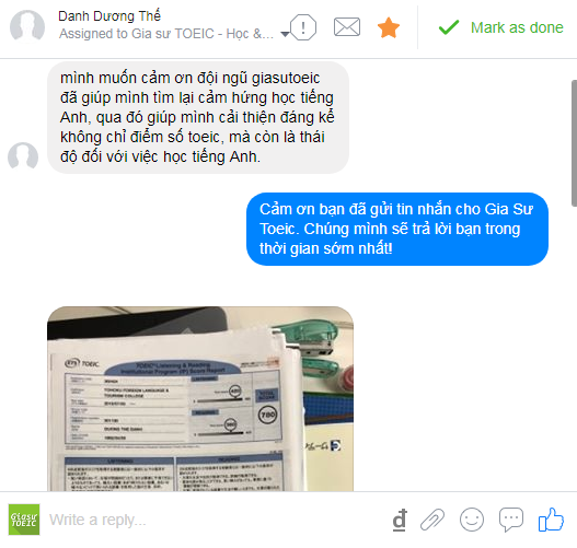Với các bạn học viên đã thi TOEIC đạt điểm mong đợi, hãy gửi hình chụp bảng điểm cho Tiếng Anh Mỗi Ngày để được giảm 30% học phí cho khóa học tiếp theo mà bạn mua ở Tiếng Anh Mỗi Ngày.