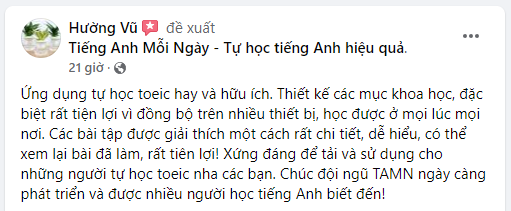 Đây là review tiêu biểu trên Fanpage Tự học tiếng Anh hiệu quả (Fanpage thứ 2 của TAMN):