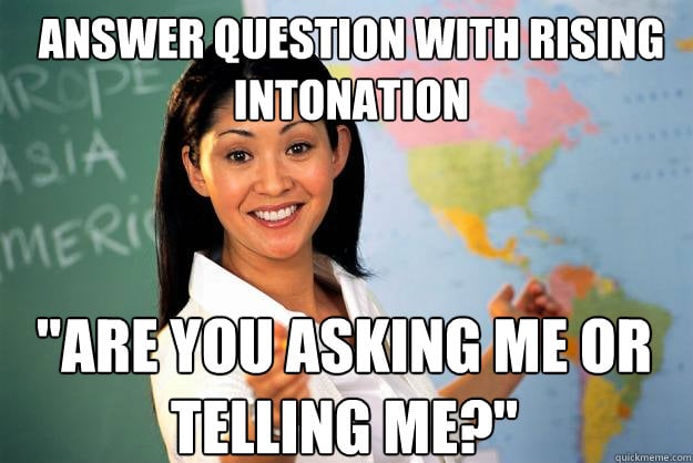 Nhưng do vậy mà các bạn cần lưu ý là phải lên giọng cho rõ ràng. Vì trong tiếng Anh cứ mặc định nếu xuống giọng là câu khẳng định còn lên giọng thì sẽ thành câu hỏi.