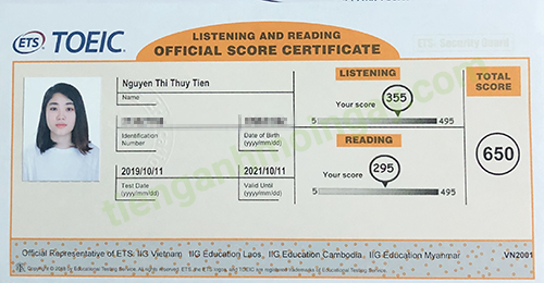 Sau đó bạn Thủy Tiên đã thi TOEIC chính thức và đạt 650 điểm TOEIC thật.