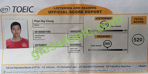 Sau hơn 1 tháng ôn tập trên Tiếng Anh Mỗi Ngày, anh Chung đã tăng từ 450 điểm ban đầu lên 520 điểm TOEIC thật. Hiện tại anh Chung vẫn đang học tiếp trên Tiếng Anh Mỗi Ngày để cải thiện điểm số của mình.