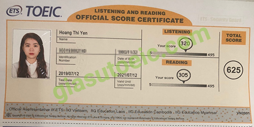 Sau 2 tháng ôn tập trên Tiếng Anh Mỗi Ngày, bạn Yến đã tăng từ 490 điểm ban đầu lên 625 điểm TOEIC thật.