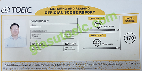 Sau 1 tháng ôn tập trên Tiếng Anh Mỗi Ngày, anh Huy đã tăng từ 385 điểm lên 470 điểm TOEIC thật. Hiện tại anh Huy vẫn tham gia khóa học của Tiếng Anh Mỗi Ngày để cải thiện thêm điểm số của mình.