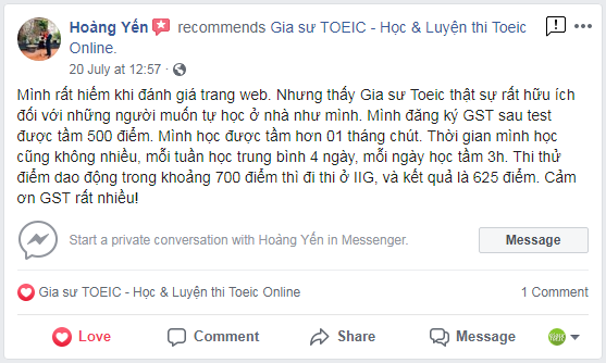 Xem nhận xét khác trên Gia sư TOEIC Fanpage tại đây!