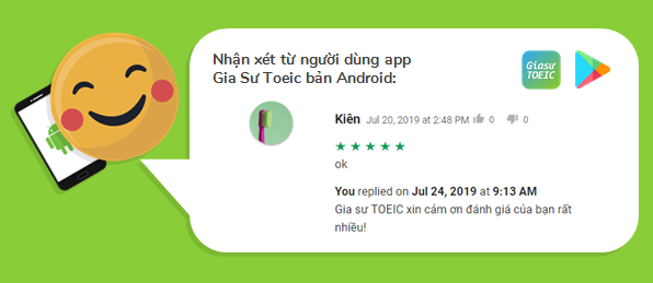 Dưới đây là chia sẻ đánh giá trên App Android Tiếng Anh Mỗi Ngày mới nhất tuần vừa rồi: