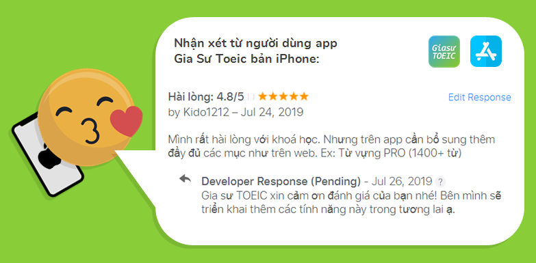 Dưới đây là chia sẻ đánh giá trên App iOS Tiếng Anh Mỗi Ngày mới nhất tuần vừa rồi: