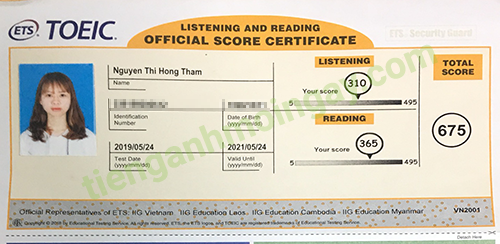 Ms. Nguyễn Thị Hồng Thắm đã đạt 675 điểm TOEIC ngày 24/05/2019