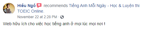Đây là review tiêu biểu trên Tiếng Anh Mỗi Ngày Fanpage tuần vừa rồi: