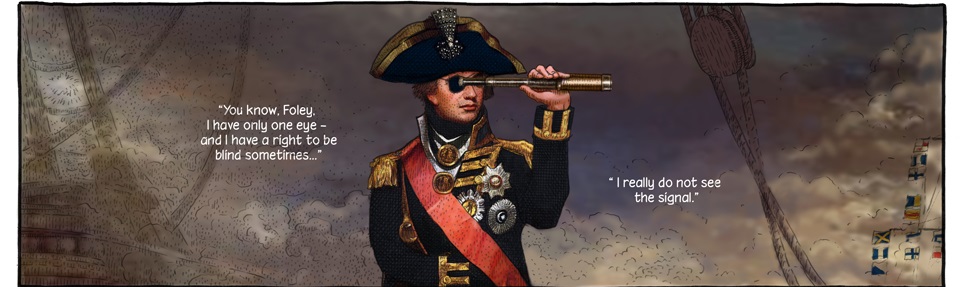 Khi Nelson bất đồng ý kiến với cấp trên và bị bắt rút lui, ông cố tình đưa ống dòm lên để nhìn cờ lệnh bằng...con mắt bị mù của mình, rồi nói rằng ông không thấy hiệu lệnh gì cả.