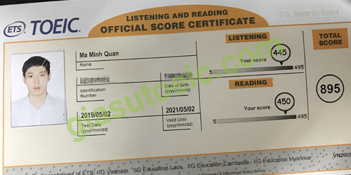 Sau quá trình ôn tập 1 tháng ở Tiếng anh Mỗi ngày, bạn Minh Quân đã tăng từ 730 điểm và đi thi đạt 895 điểm TOEIC như mong đợi. Đây là số điểm rất cao!