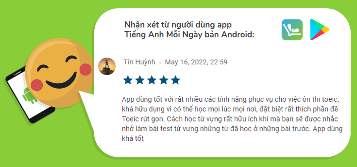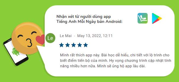 Đây là review tiêu biểu trên Tiếng Anh Mỗi Ngày mobile apps:
