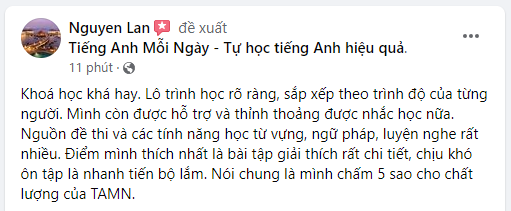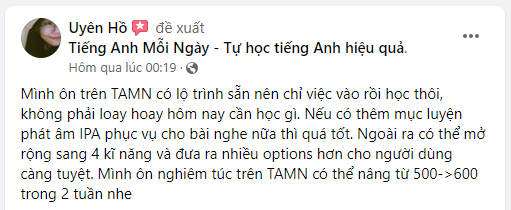 Đây là review tiêu biểu trên Fanpage Tự học tiếng Anh hiệu quả (Fanpage thứ 2 của TAMN):