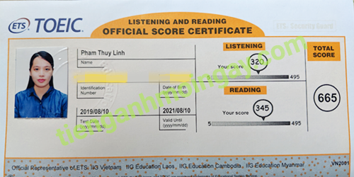 Sau thời gian 5 tháng ôn tập trên Tiếng Anh Mỗi Ngày, bạn Linh đã tăng từ 400 điểm ban đầu để đạt 665 điểm TOEIC thật. Hiện tại bạn vẫn tiếp tục học trên trang bên mình để cải thiện điểm số của mình.
