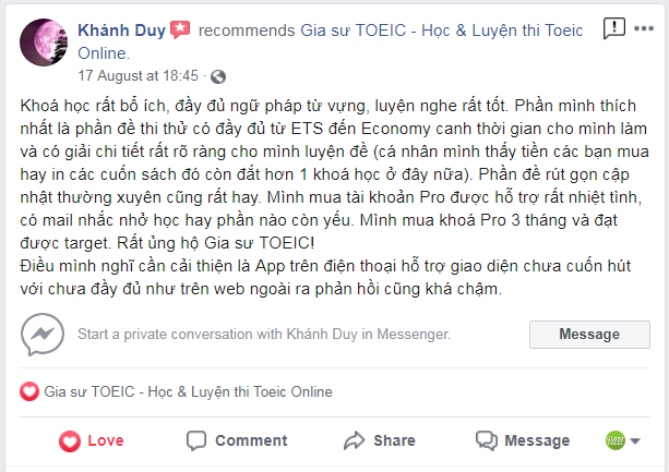 Kích xem nhận xét của học viên trên Tiếng Anh Mỗi Ngày Fanpage tại đây!